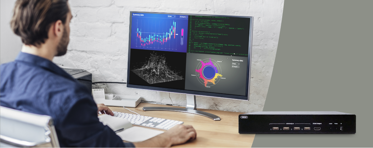 The 4-in-1-out HDMI® KVM switch is a high-performance and plug-and-play device that can seamlessly switch between 4 HD digital videos and display 4 videos on the same screen.