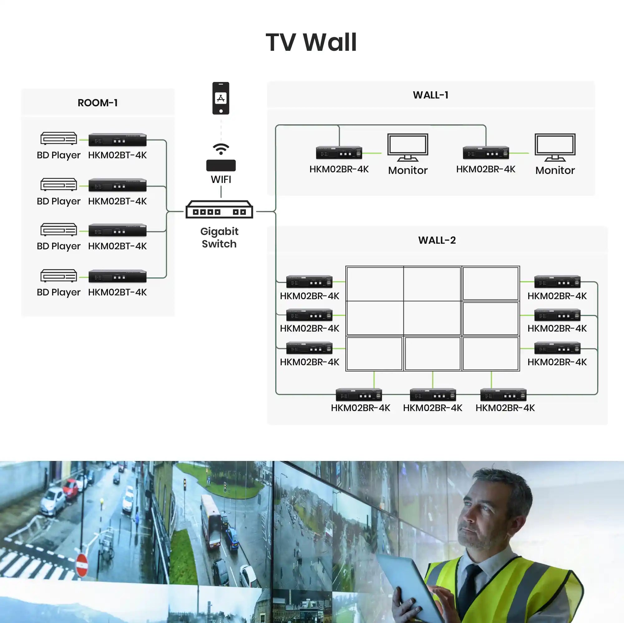 The SC&T HKM02B-4K6G POE 4K HDMI® KVM & USB, RS232, IR, Audio over IP Extender (HKM02B-4K) uses AV over IP technology to route up to 1,000 4K HDMI® sources to up to 60,000 displays over IGMP and Jumbo frame protocol.