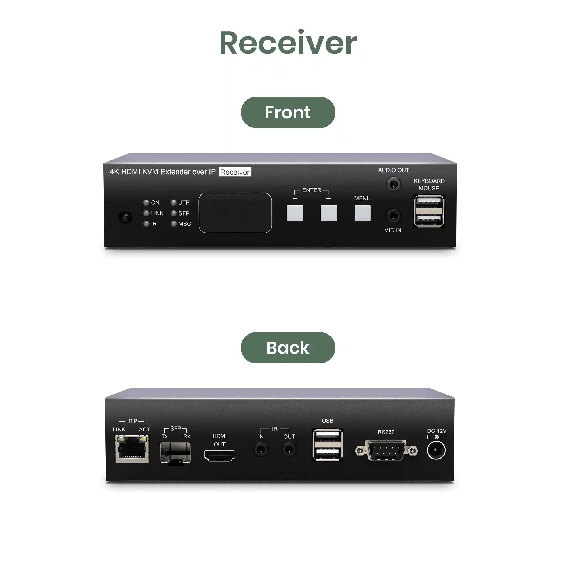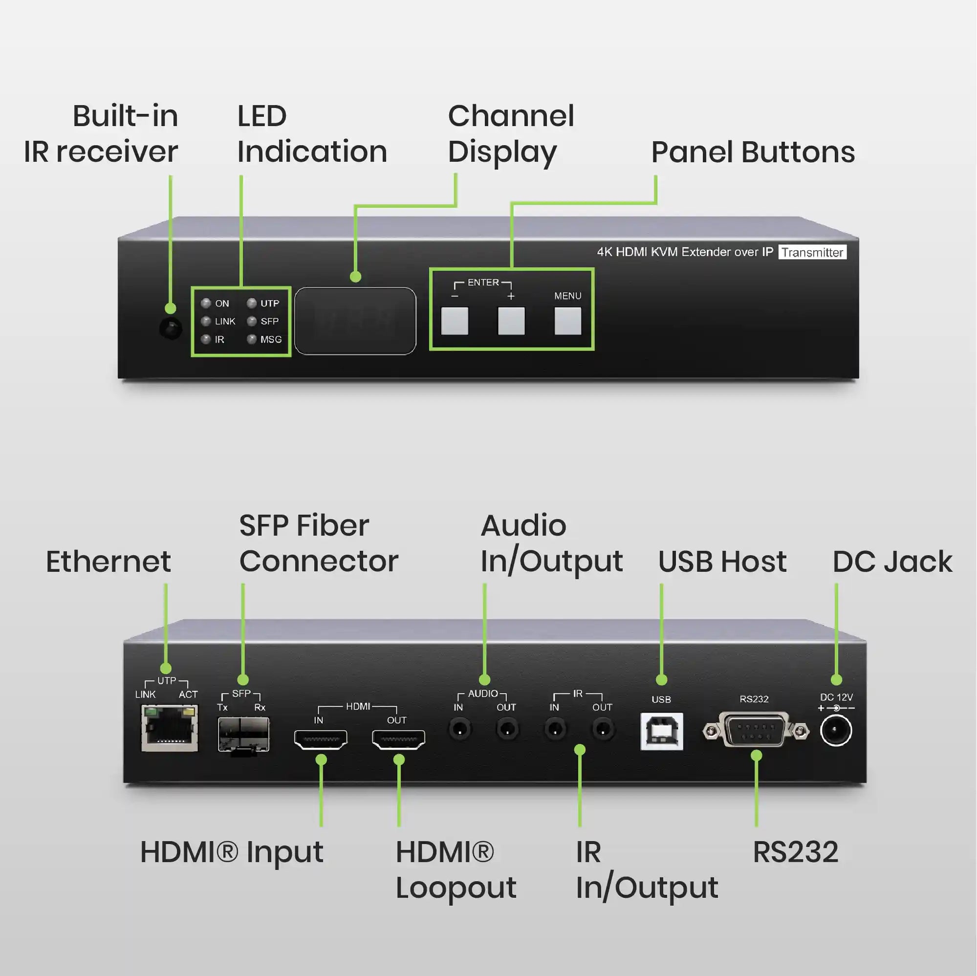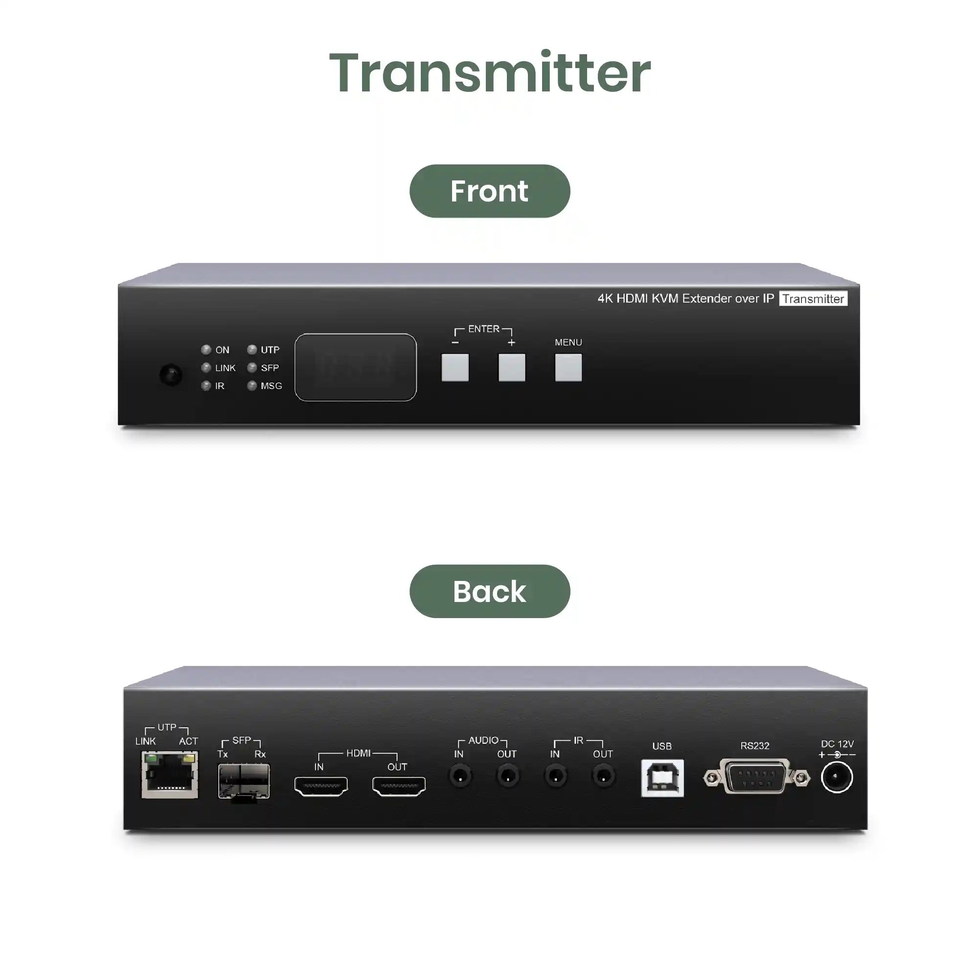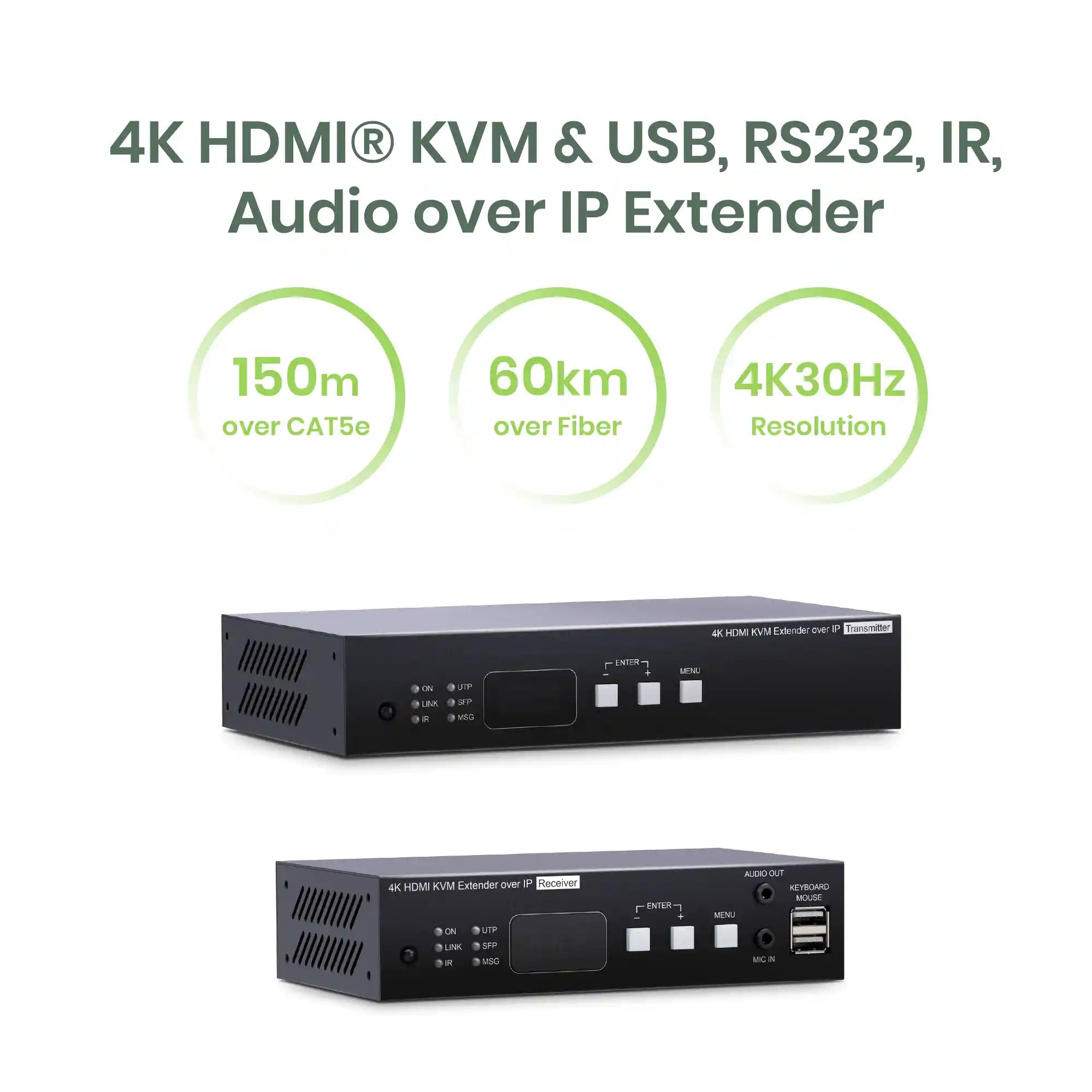 4K HDMI® POE KVM & USB, RS232, IR, Audio over IP Extender – TAA Compliant (TX & RX)