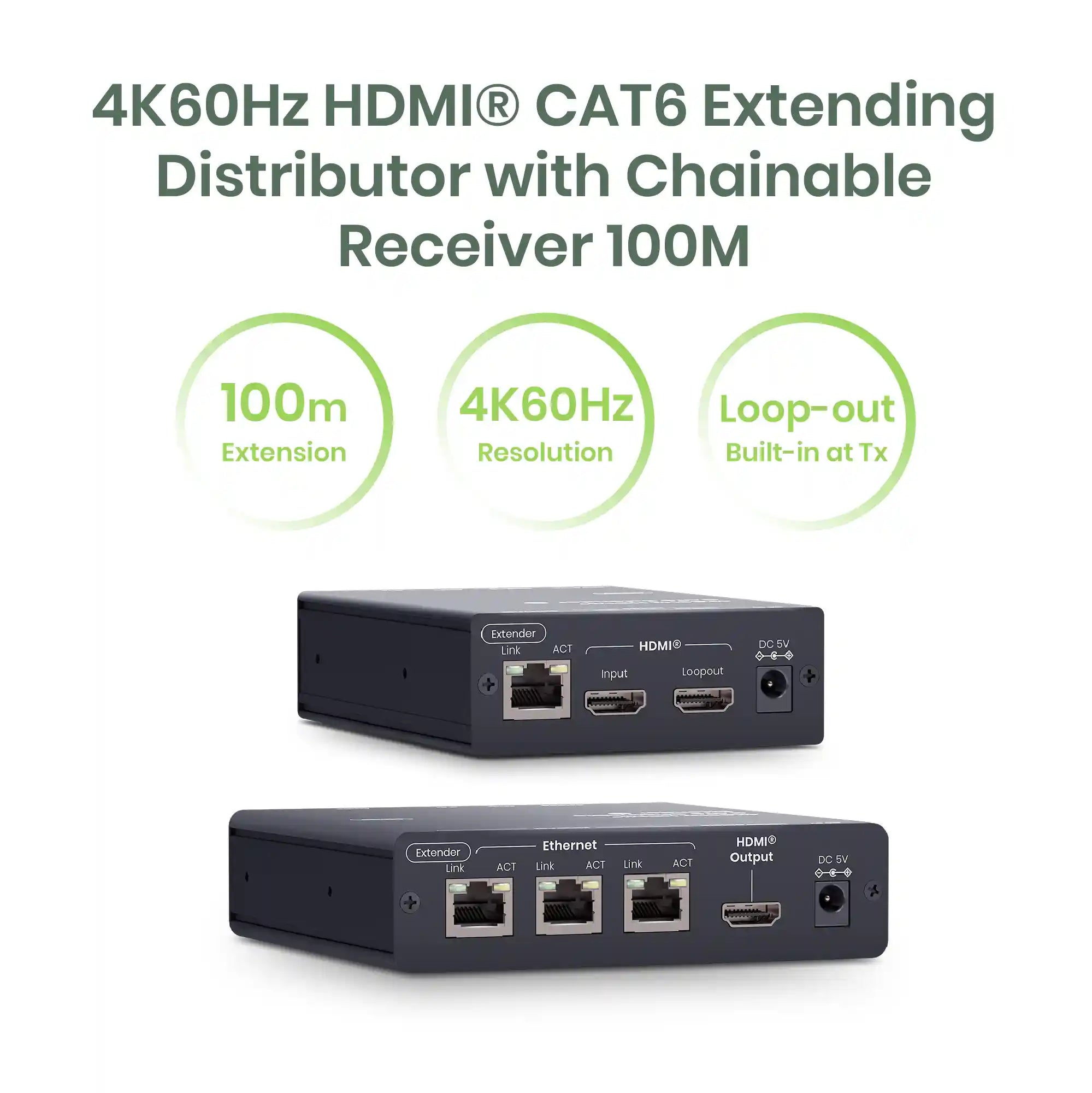 4K60Hz HDMI® CAT6 Extending Distributor with Chainable Receiver 100M – TAA Compliant (RX)