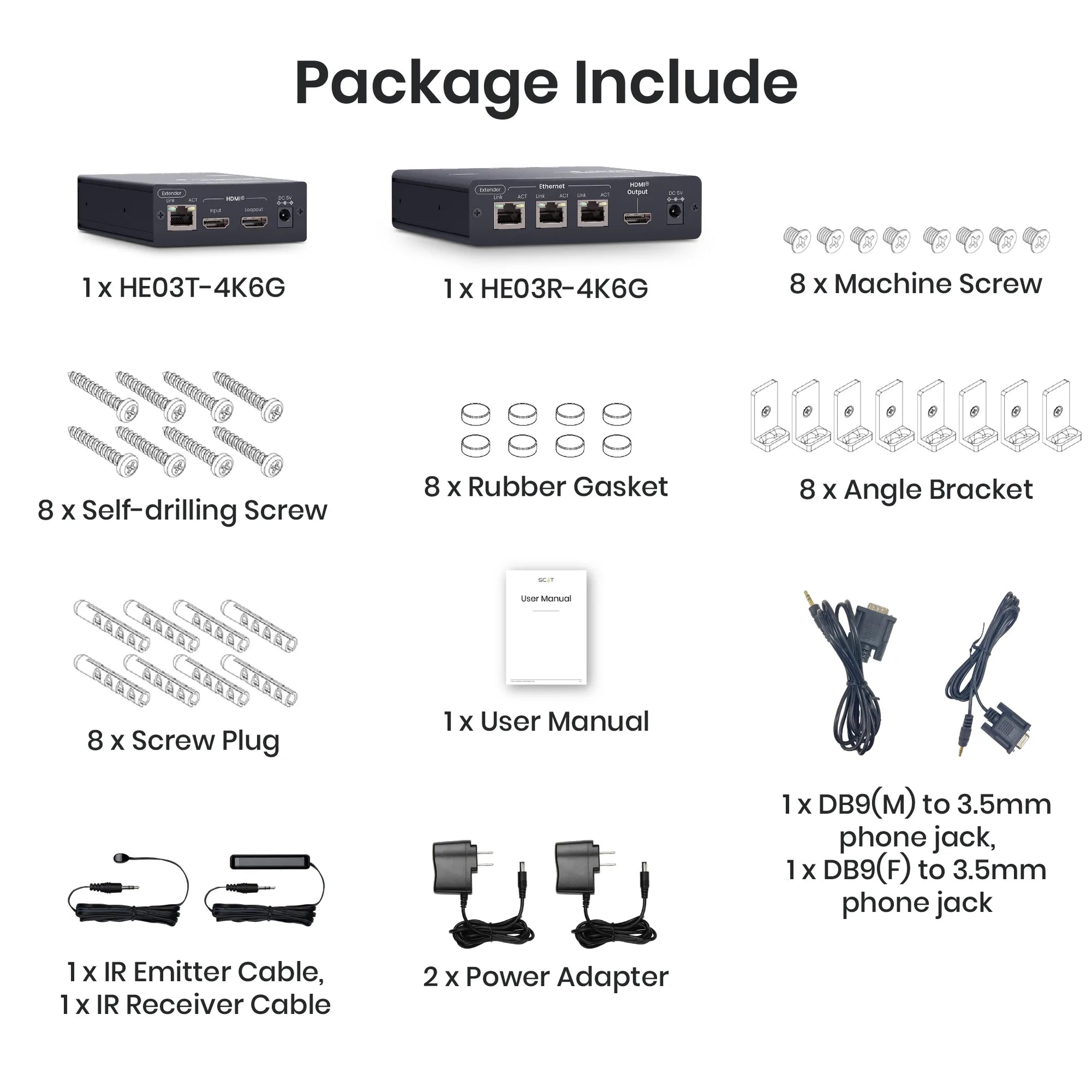 HE03LR-4K (RX) series comprises of HDMI Extender Splitters, capable of extending HDMI signals over distances ranging from 393 to 557 feet (120 to 170 meters). The series offers, 4K at 30Hz, and 4K at 60Hz resolutions. Additionally, daisy-chaining accessories are available, allowing connection of up to 250 devices for a total extension of up to 8,200 feet (2.5 kilometers).