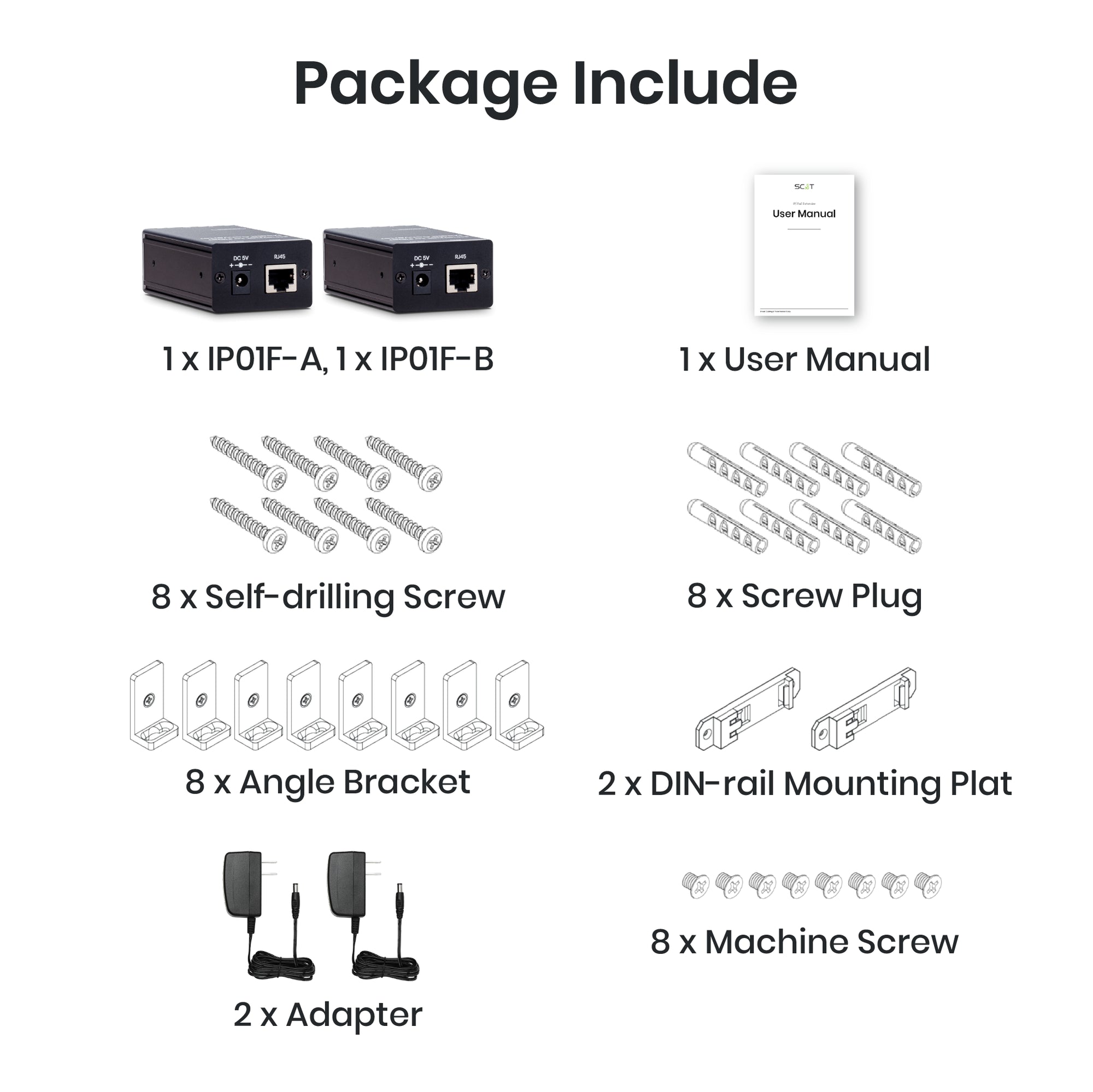 IP01FK is an Ethernet to Fiber Converter that can transmit data communication protocols including Ethernet, Fast Ethernet, and Gigabit Ethernet over fiber optics. IP01F can also work as an Ethernet over fiber extender with a transmission distance reaching up to 20km over a single-mode fiber module and single-core fiber cable. The plug-and-play media converter is an ideal solution for CCTV networks, AVoIP systems, and IT infrastructure. As a high-speed network fiber converter, IP01F has a built-in SC single-mode connector and can be used to extend the network over fibers for up to 20 km with a maximum bandwidth of 1G. For large projects, the long distance and high bandwidth are ideal for connecting large switches in the server room or transmitting multiple cameras or network equipment at once.