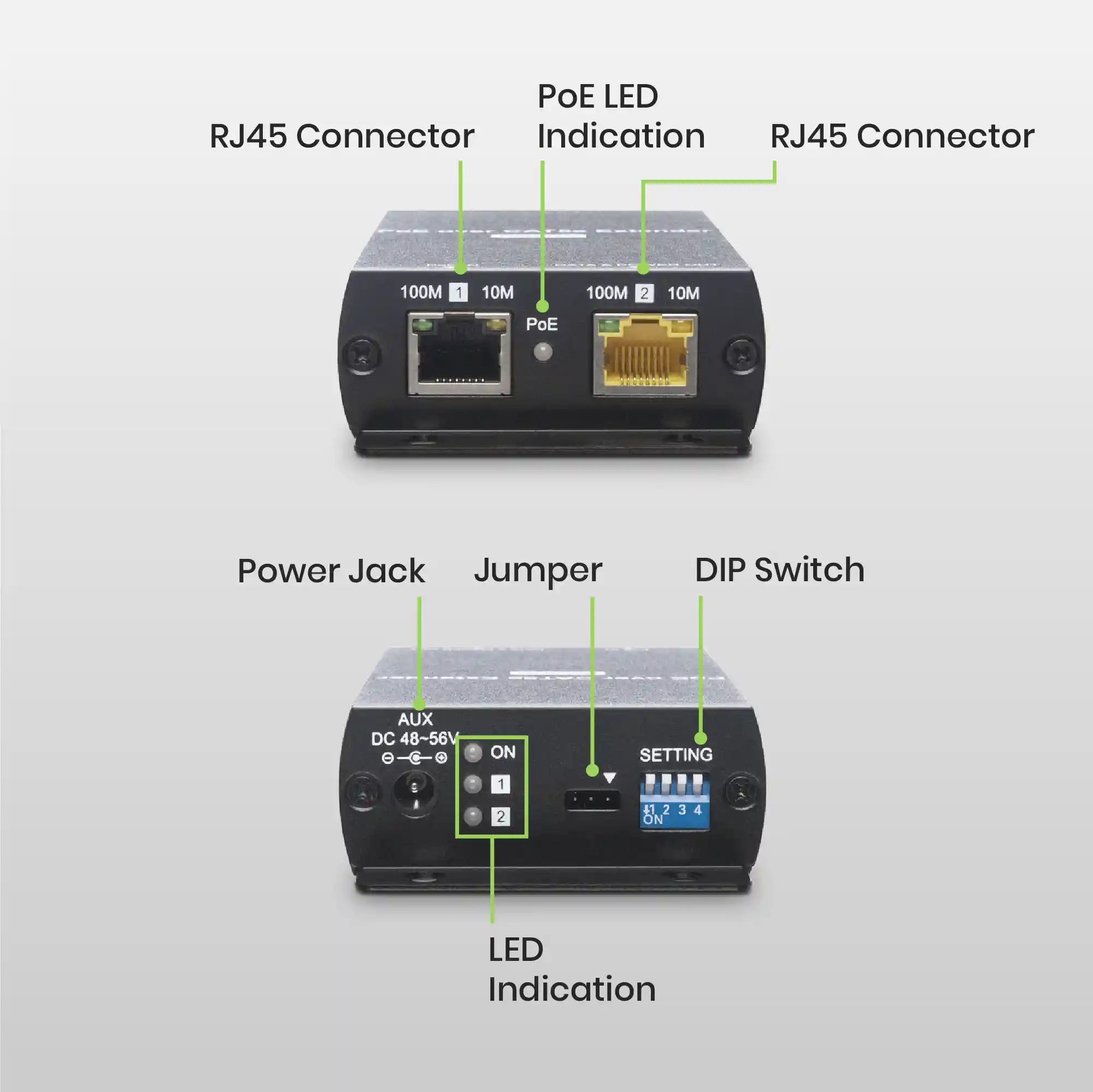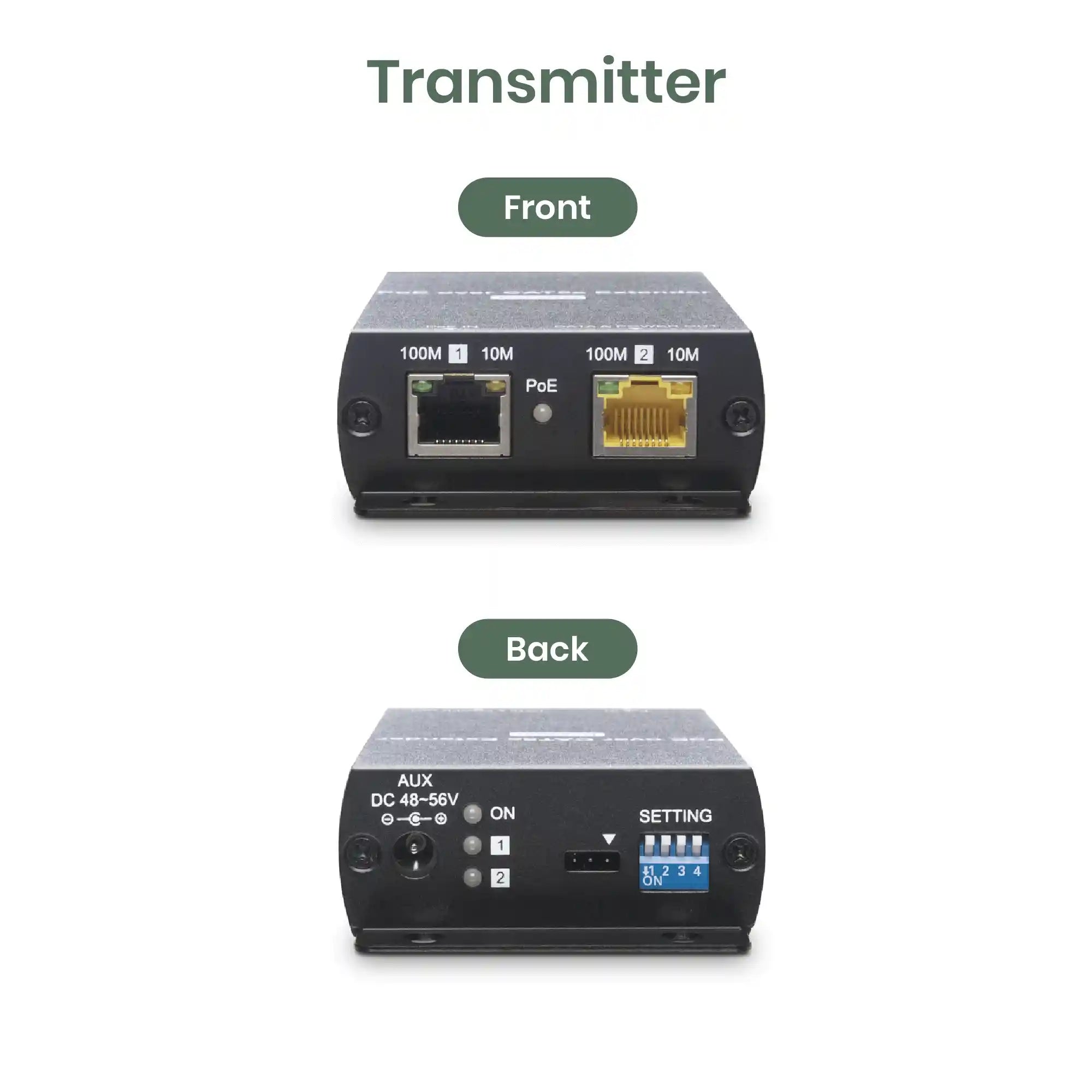 - Extends PoE signal over a cost-effective Ethernet cable.